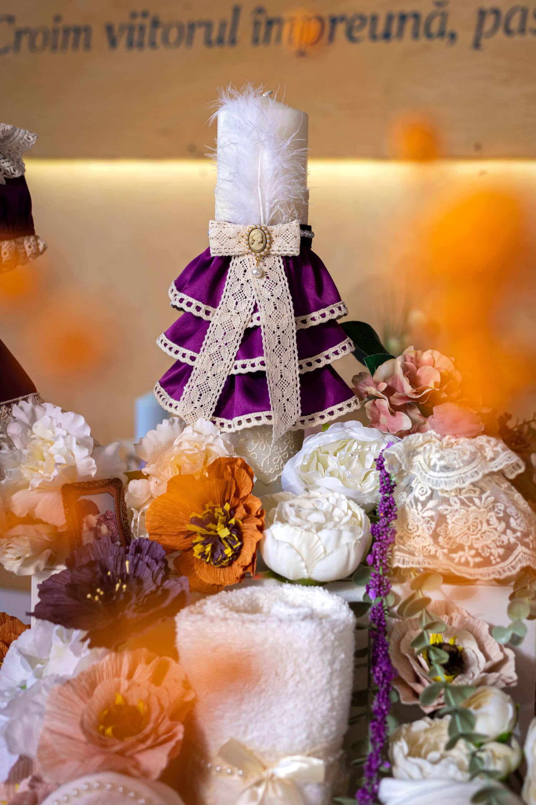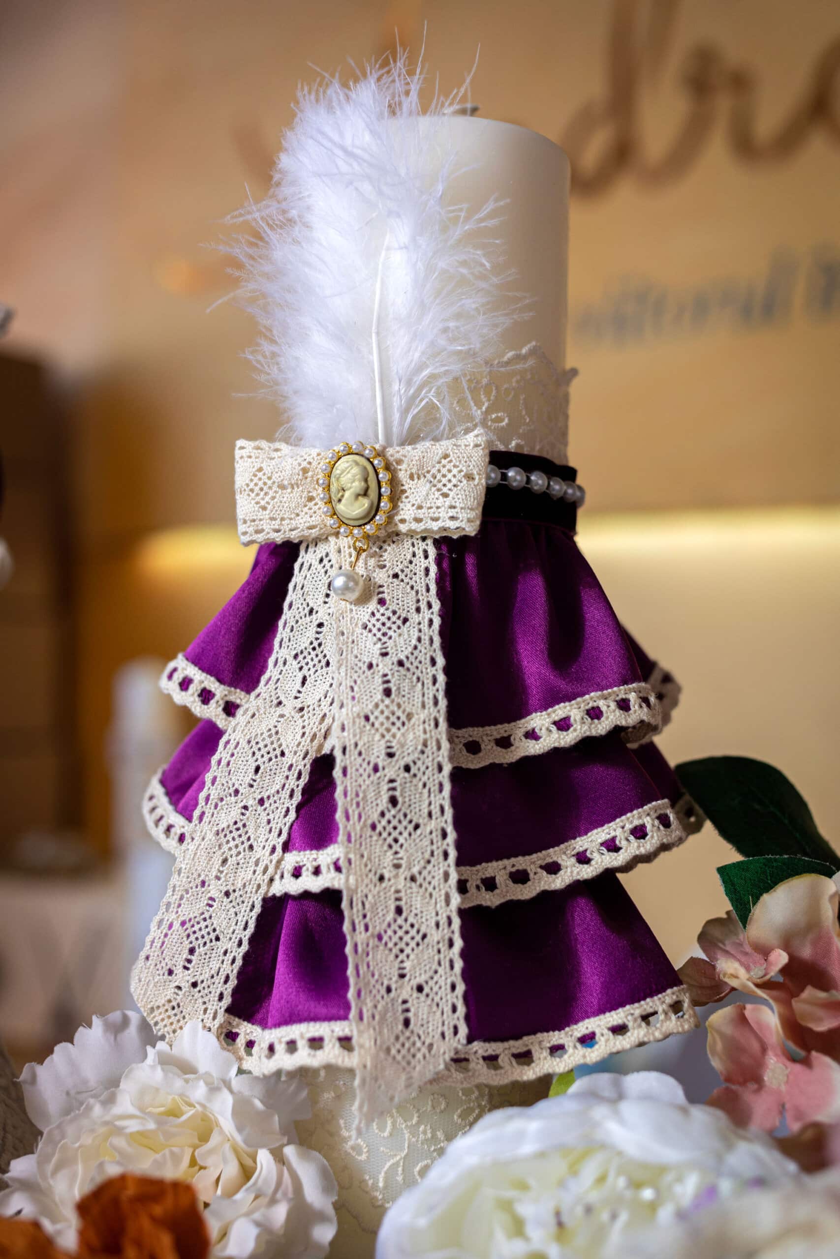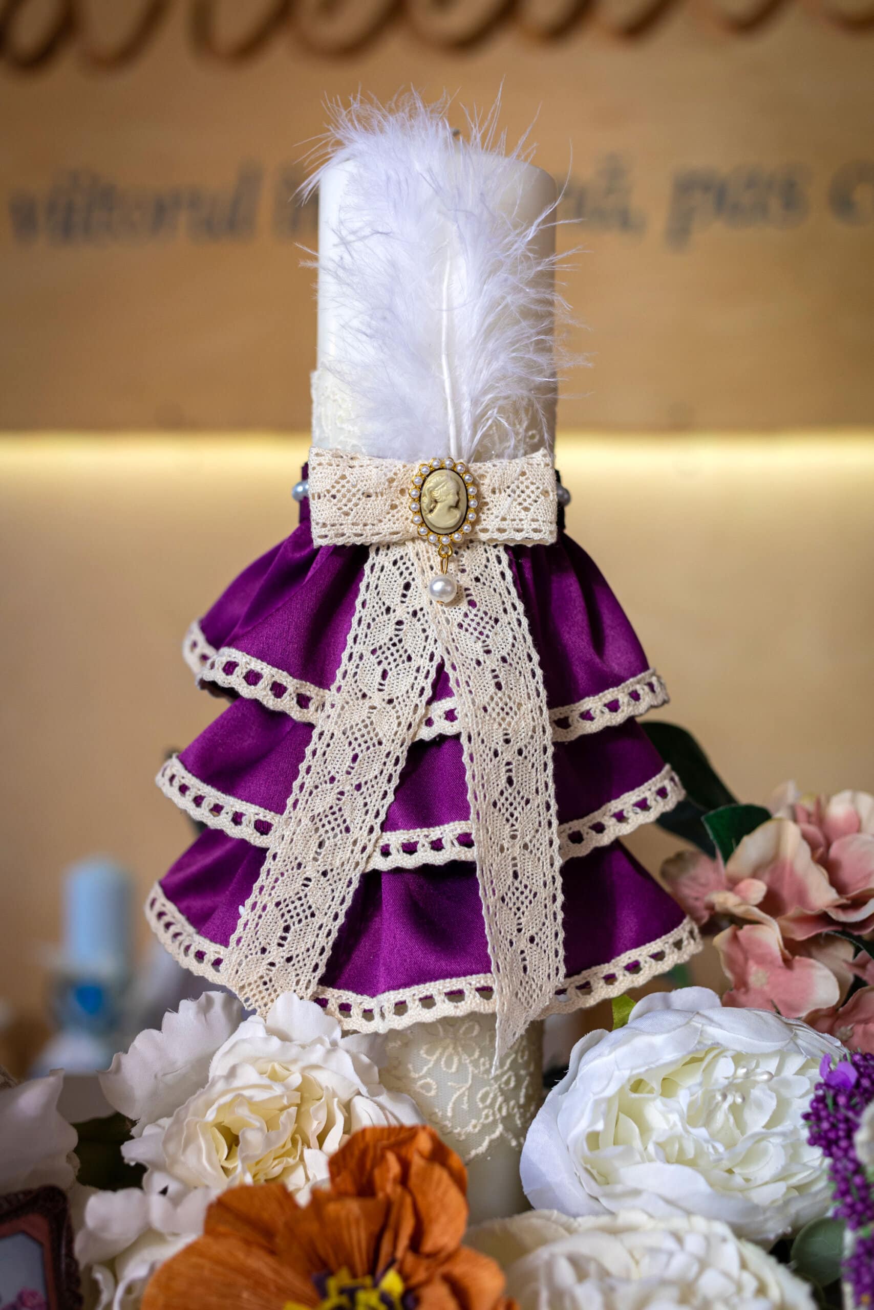 - Lumânare botez – Lumânare botez A16 – volane mov