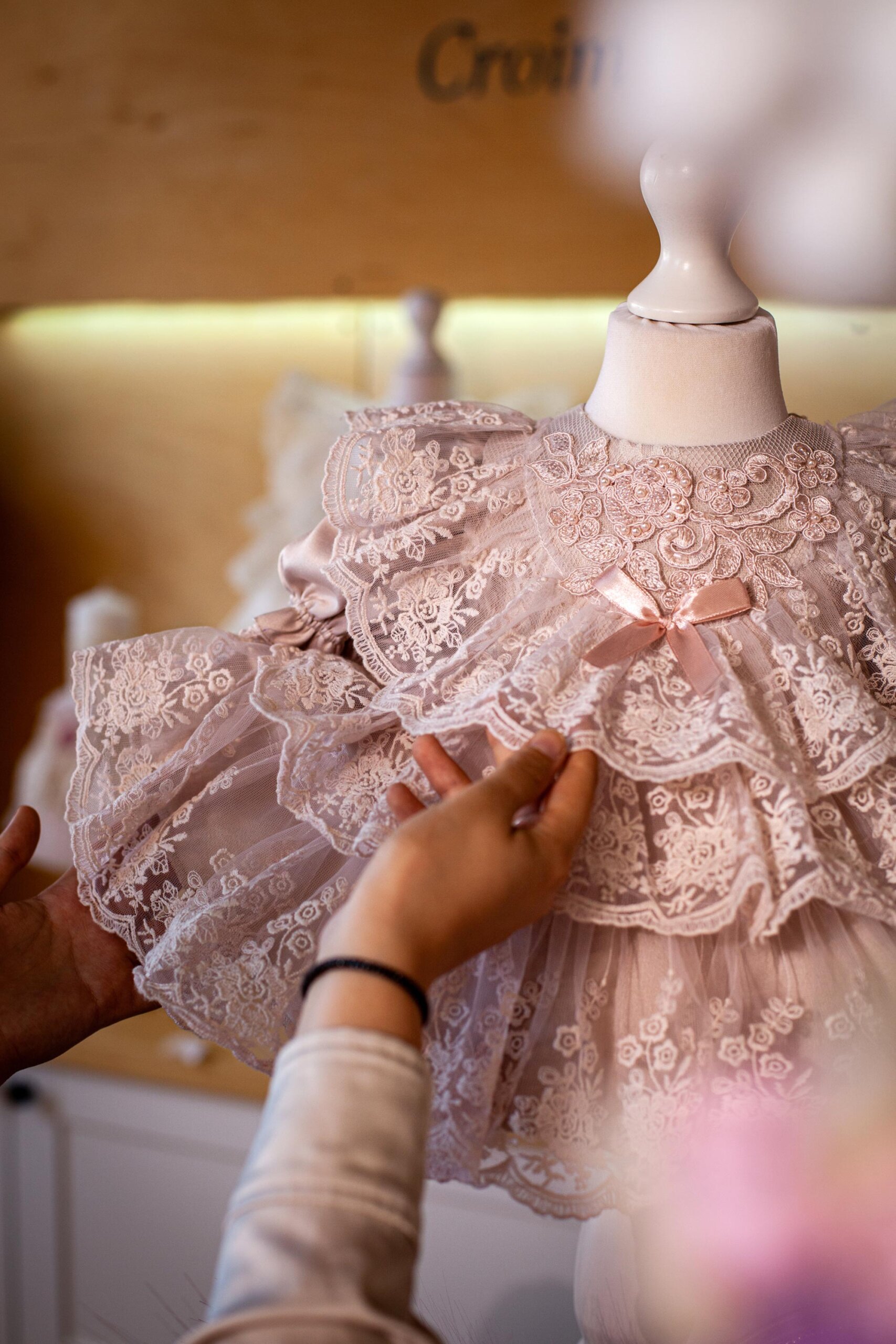 Set complet botez (trusou) – Claire – roz – mânecă 3/4
