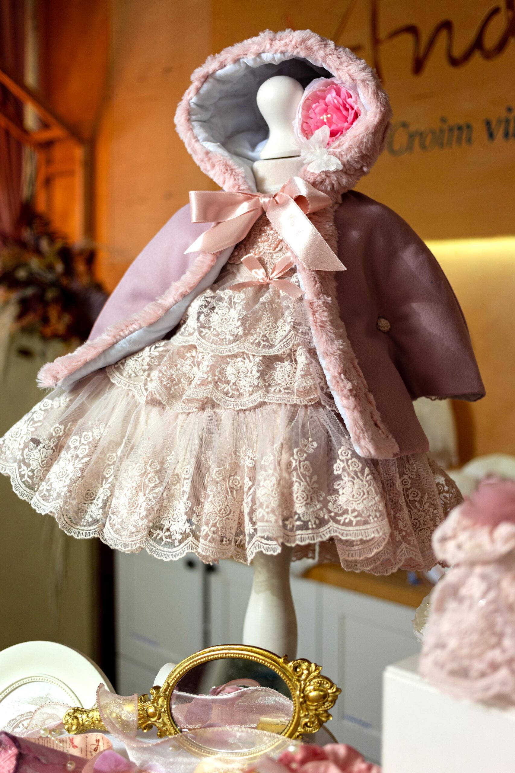 Set complet botez (trusou) – Milla cu capă – roz vintage