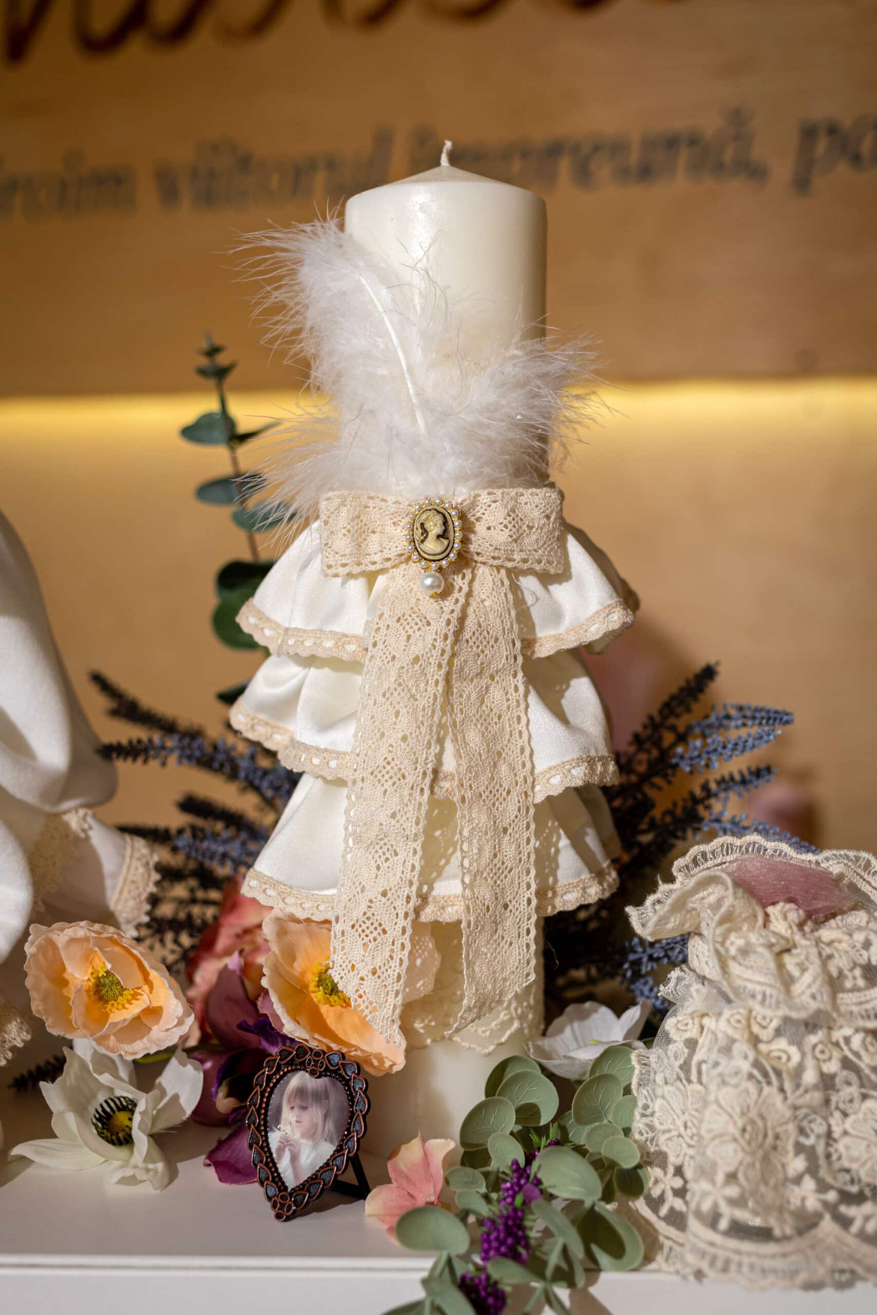 - Lumânare botez – Lumânare botez A16 – volane ivoire