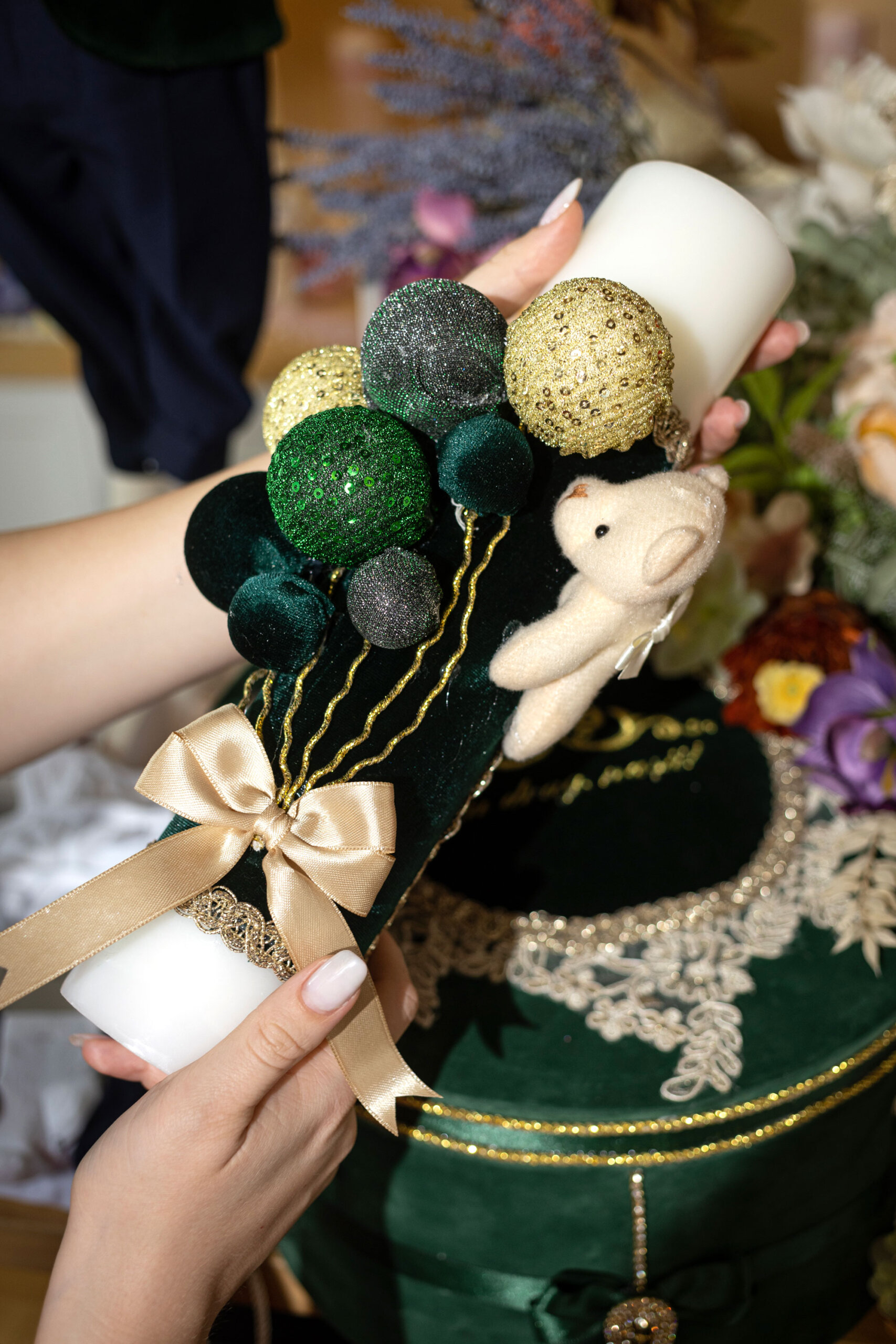 - Lumânare botez – A21//Ursuleț cu Baloane Catifea verde