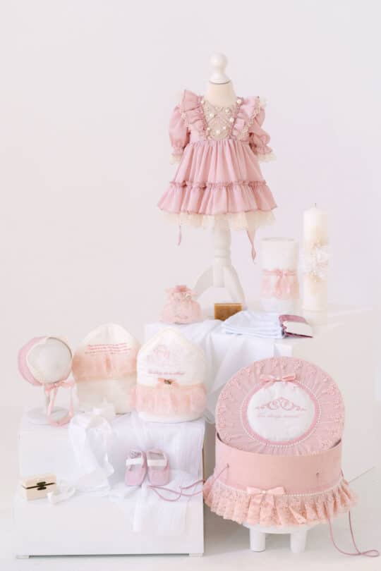 Set complet botez (trusou) – Milla cu capă – roz vintage