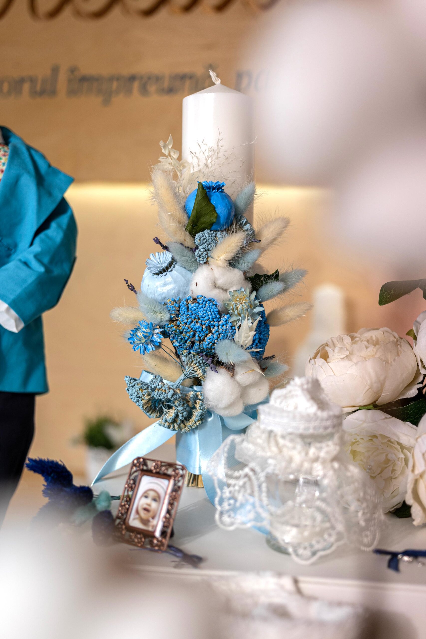 - Lumânare botez – Andreeatex x Floral Symmetry – parafină color bleu