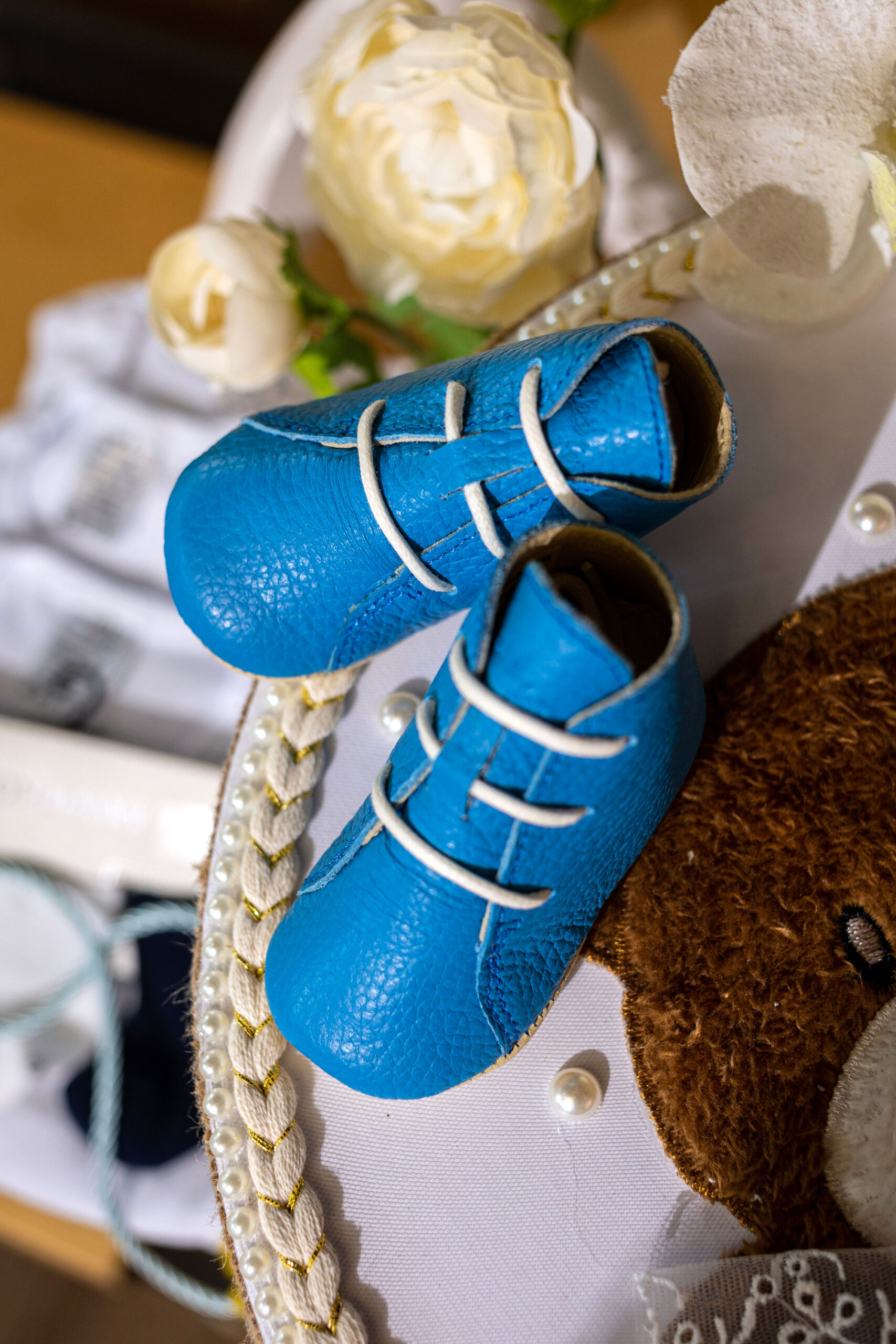 - Pantofiori ghetuță piele naturală – albastru