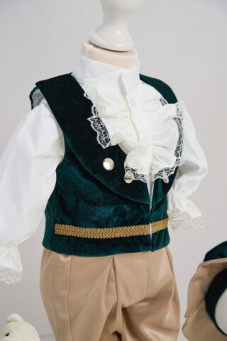 Costum botez cu sacou slim-fit din catifea – 5 piese