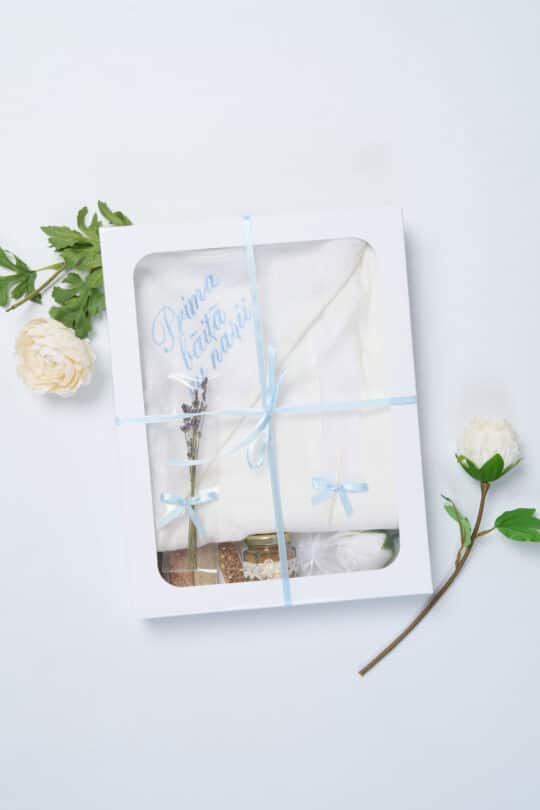 Set Cutie “Prima Băiță cu Nașii” – Tradiție, Iubire și Binecuvântare – bleu