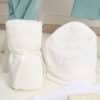 În completare, setul conține un trusou de botez din bumbac 100%, format din 7 piese atent lucrate, precum și o lumânare de botez decorată în tonuri delicate, perfect asortată întregului ansamblu.