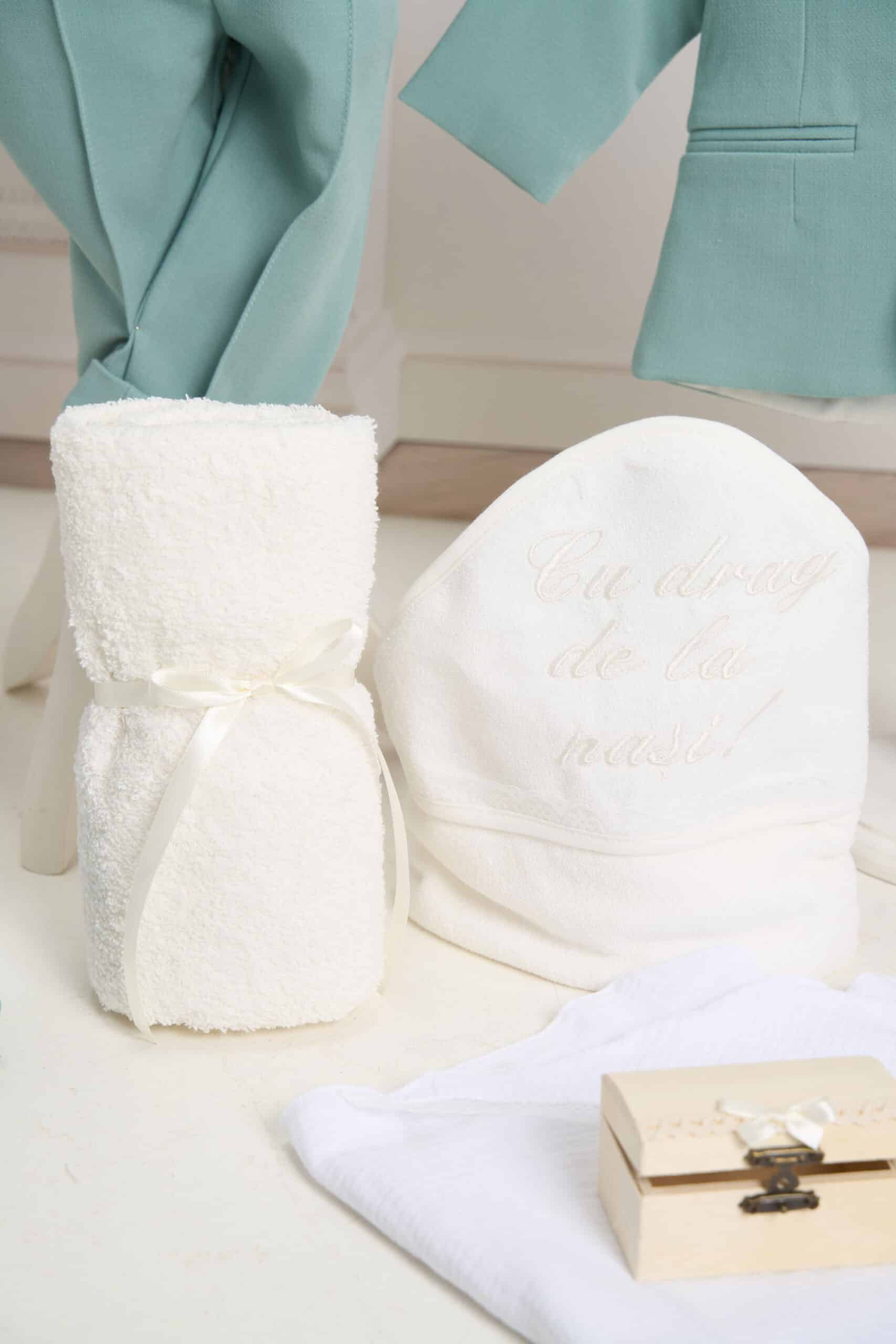 - Prosop cu capișon brodat 82×82 cm – Cu drag Nașii!