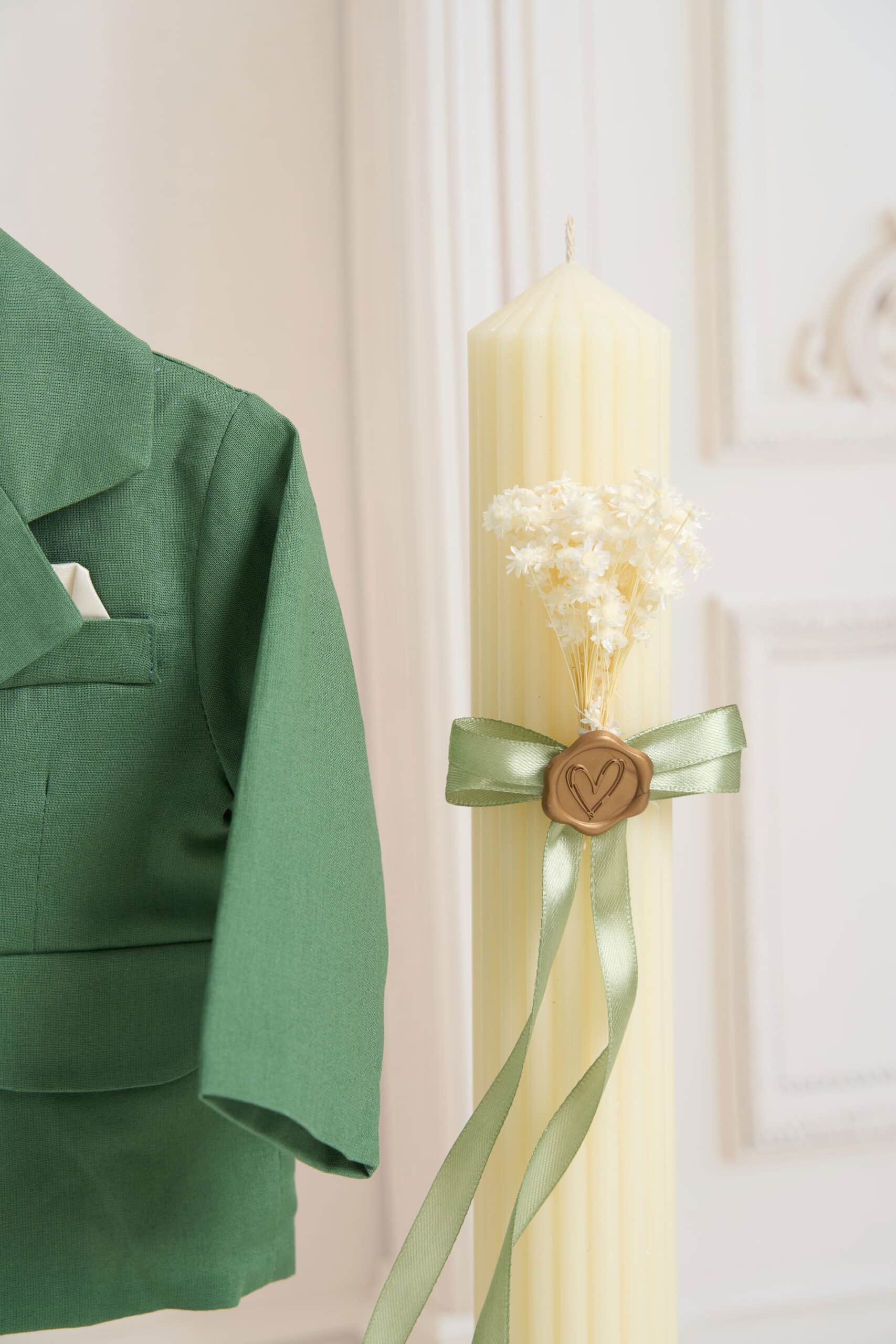 Costum botez 5 piese + Trusou 7 piese + Lumânare – se poate personaliza