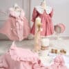 Set complet botez (trusou) – Miss Coco – roz (mânecă lungă)