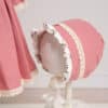 - Set Pavlova 3 piese – Rochiță din bumbac cu guler brodat manual și margine din dantelă fină; Bonetă asortată, cu volănașe și detalii brodate; Pantofiori din material textil, cu fundițe și detalii decorative.