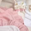 Trusou de botez muselină 7 piese – Tot ce ai nevoie într-un singur loc! Prosop cu capișon bebeluș, prosop preot, pânză cu capișon de mir, fașă, săpun, sticluță mir decorată și cutiuță pentru prima șuviță.