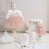 Set complet botez (trusou) – Milla – somon (mânecă lungă)