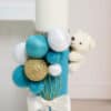 🕯️ Lumânare de botez –Lumânare cu baloane din catifea în nuanțe de turcoaz, accesorizată cu ursuleț de pluș