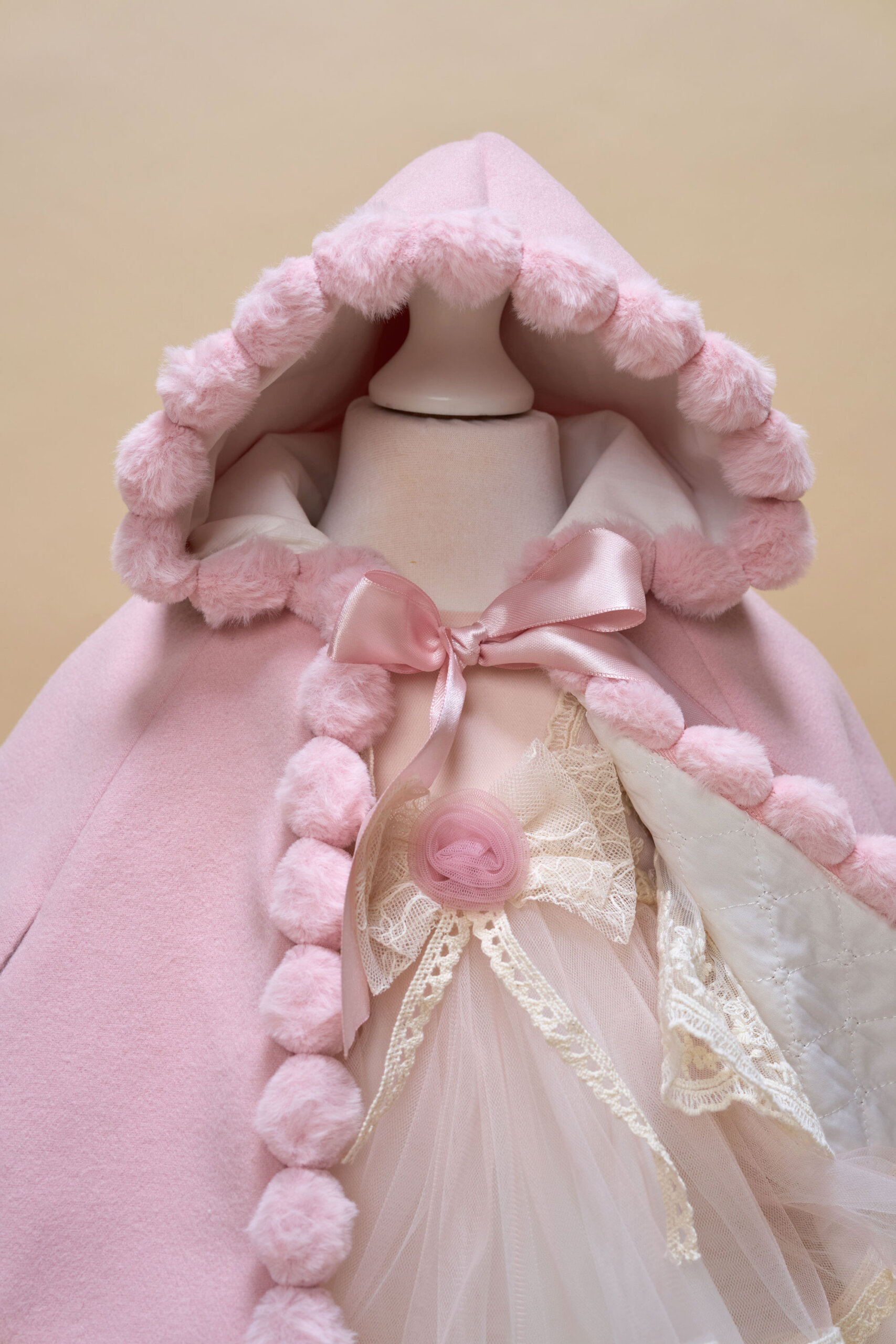 🎀 Capă pentru fetițe – Călduroasă și elegantă! Capă floare, groasă, de iarnă în nuanță roz pudră