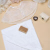 🕊️ Trusou de botez 9 piese – Tot ce ai nevoie într-un singur loc! Prosop cu capișon bebeluș, scutec bumbac cu capișon bebeluș, prosop preot, pânză de mir, fașă, săpun, sticluță mir decorată, cutiuță pentru prima șuviță și mini ramă “mărturie” – pentru poză bebeluș sau iconiță
