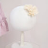 🎀 Setul pentru fetițe „Ludmila” – 2 piese – Compus din rochiță și bentiță asortată, este realizat din muselină moale roz vintage, având un design romantic cu volane delicate, dantelă ivoire și perle aplicate, ideal pentru un botez elegant și rafinat.