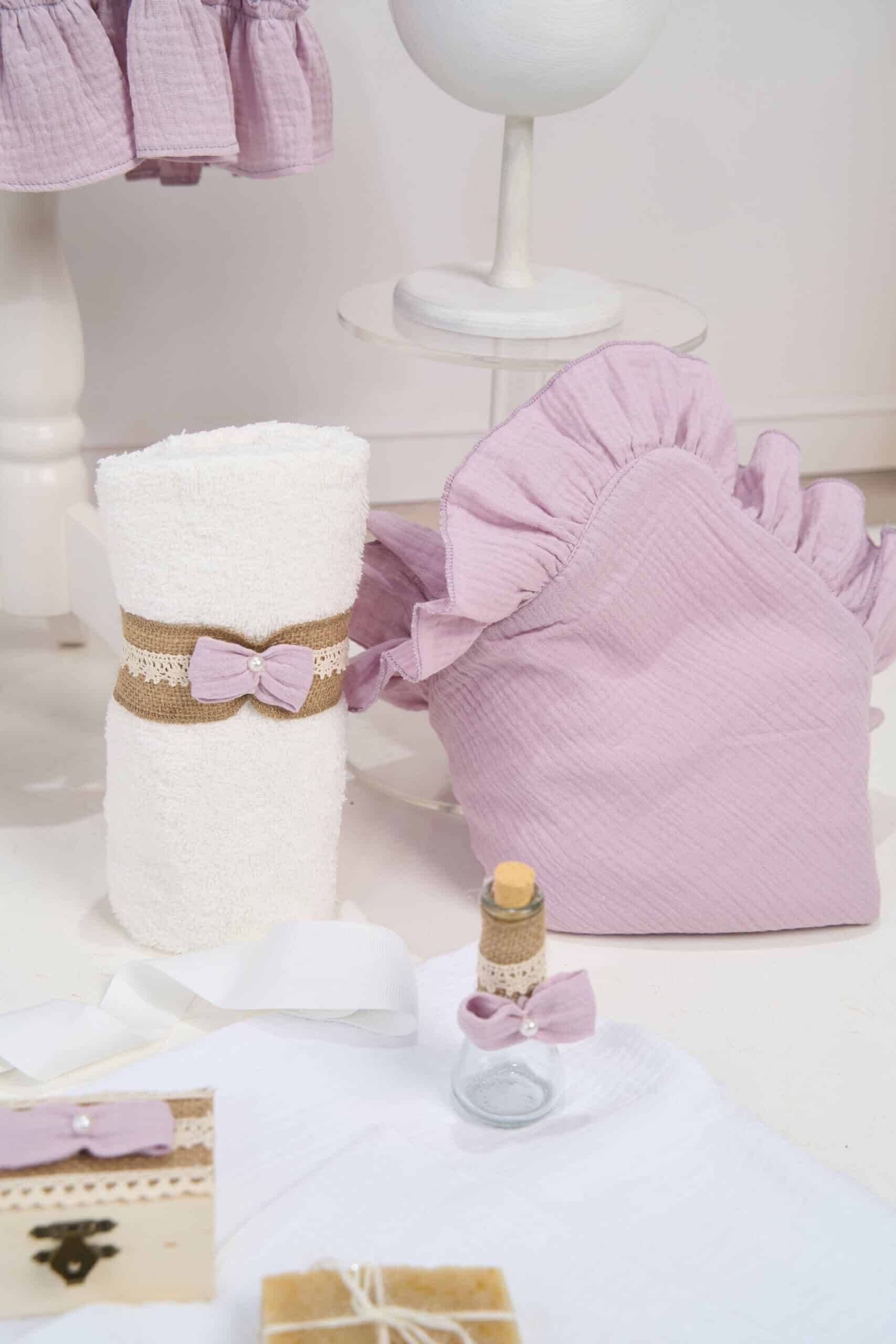 Set muselină de botez pentru fetițe cu trusou și lumânare