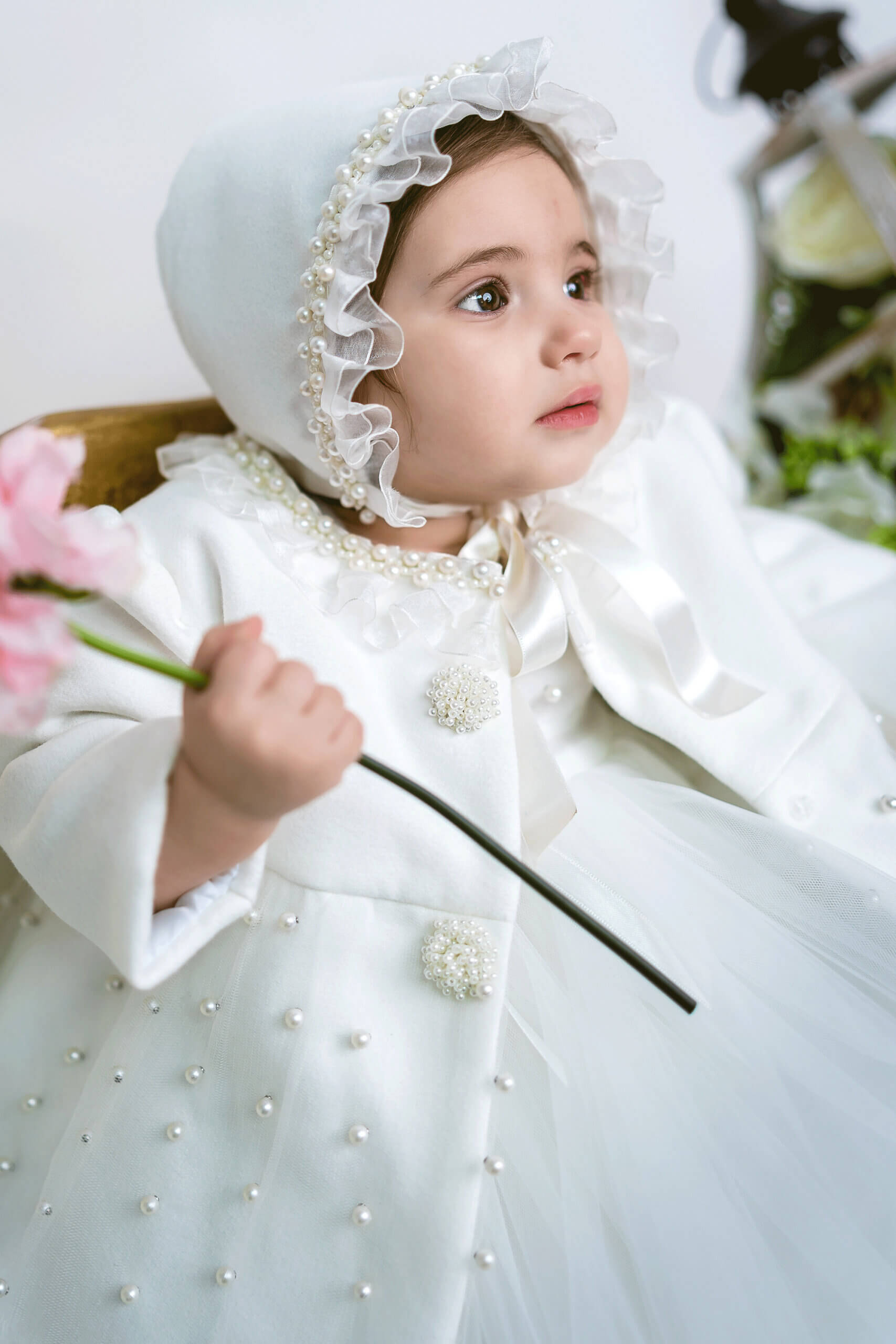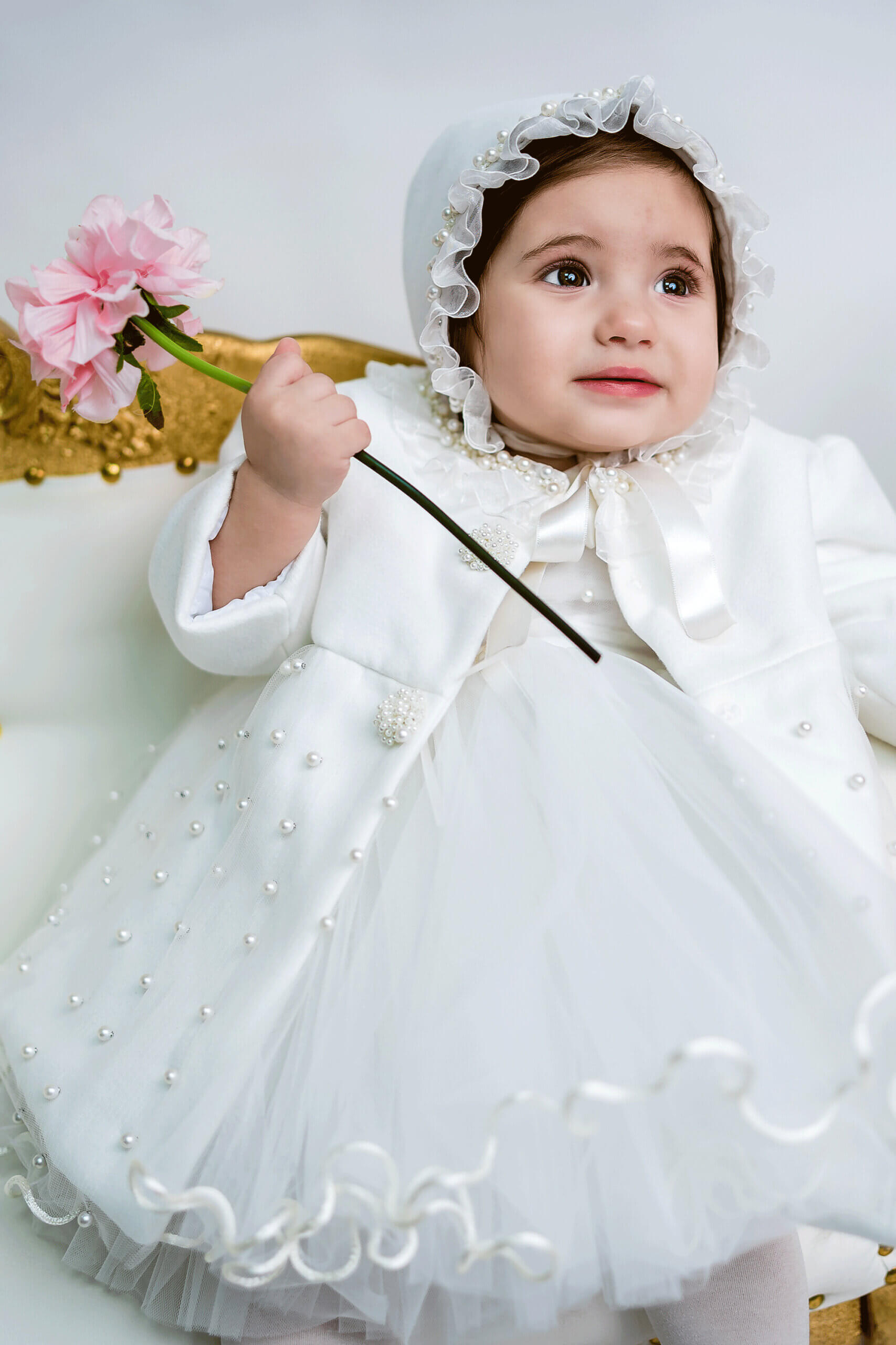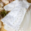 Rochița este creată cu migală, este o îmbinare armonioasă de tull și tull cu perle, conturată în talie pentru a evidenția frumusețea naturală a micuței voastre domnișoare.