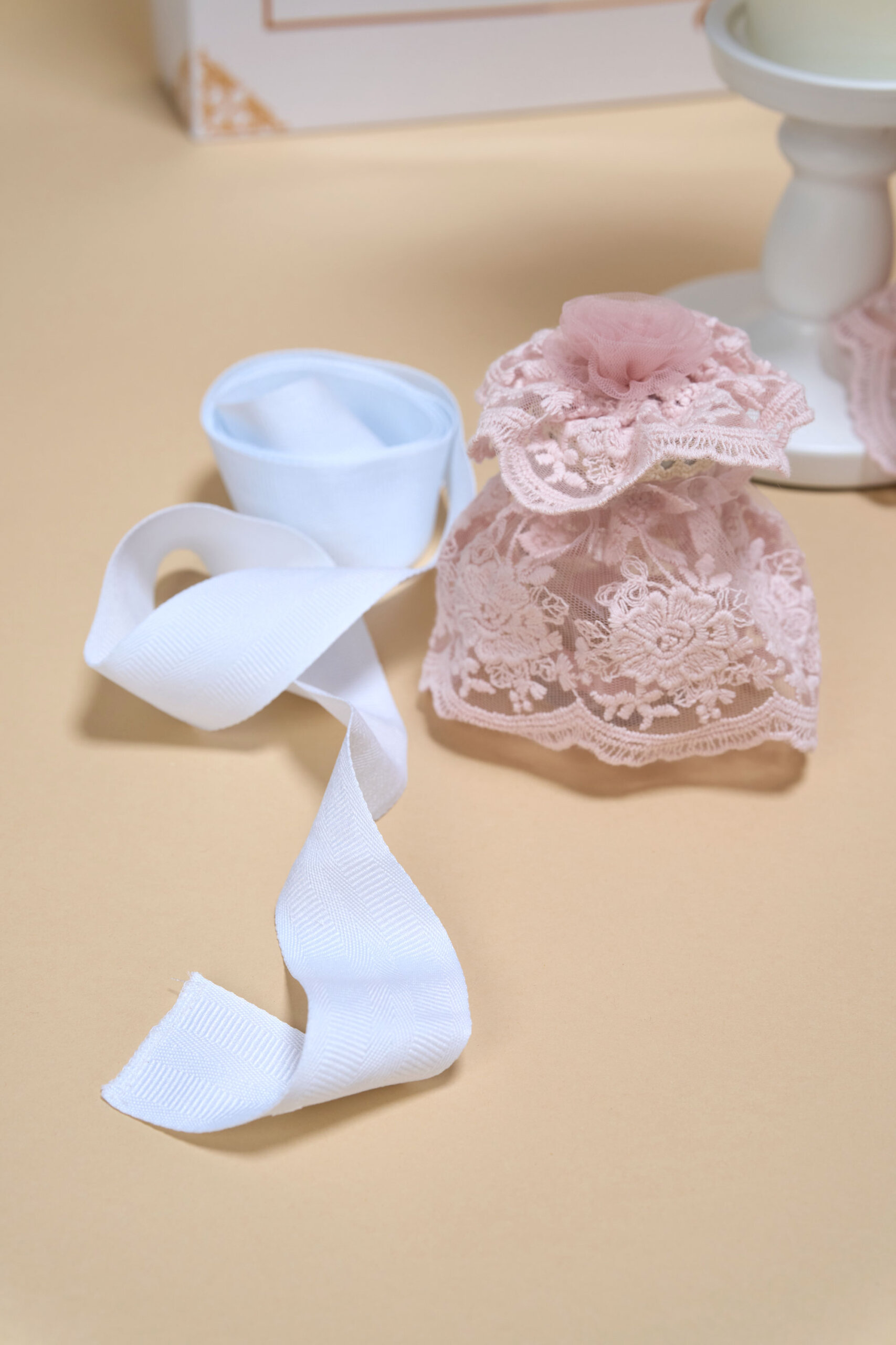 🕯️ Lumânare de botez – Delicată și decorată cu tull roz și perle, gata să lumineze ziua Botezului.
