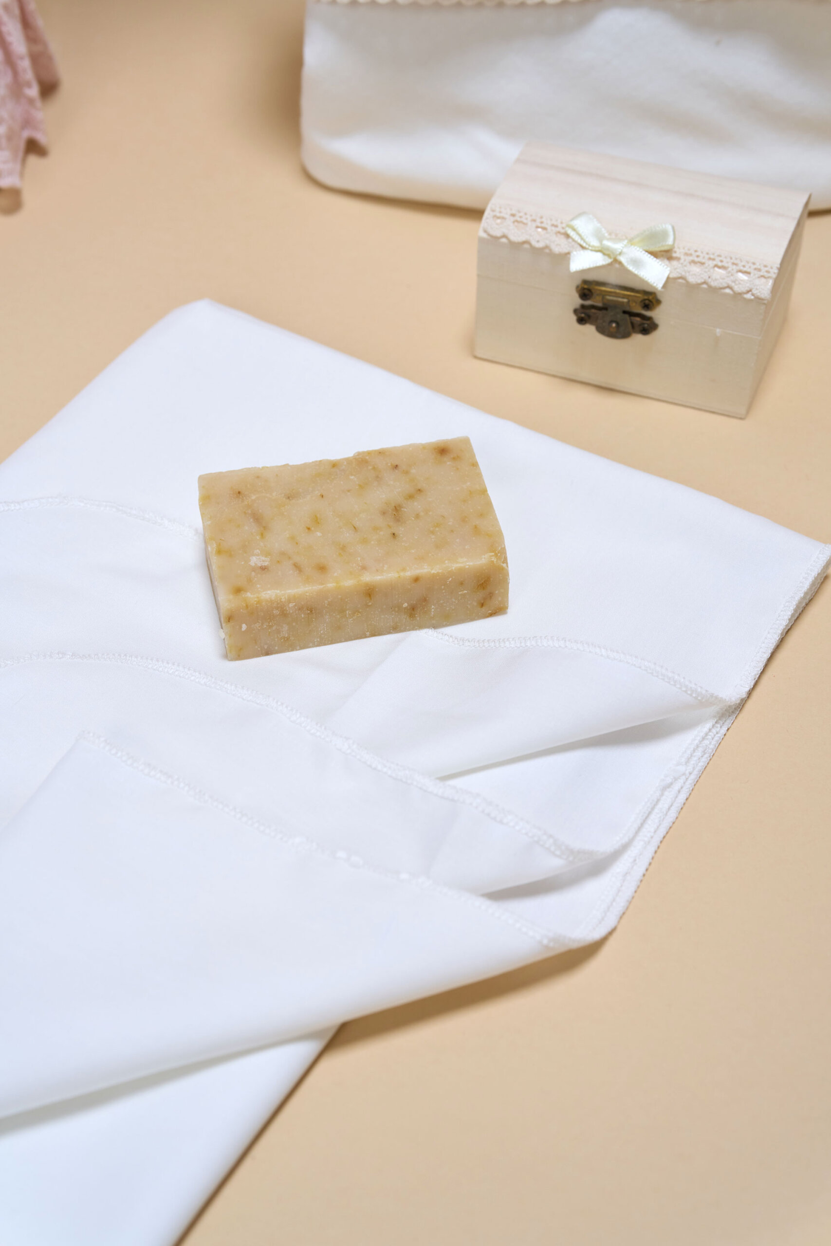 🕊️ Trusou de botez 9 piese – Tot ce ai nevoie într-un singur loc! Prosop cu capișon bebeluș, scutec bumbac cu capișon bebeluș, prosop preot, pânză de mir, fașă, săpun, sticluță mir decorată, cutiuță pentru prima șuviță și mini ramă “mărturie” – pentru poză bebeluș sau iconiță