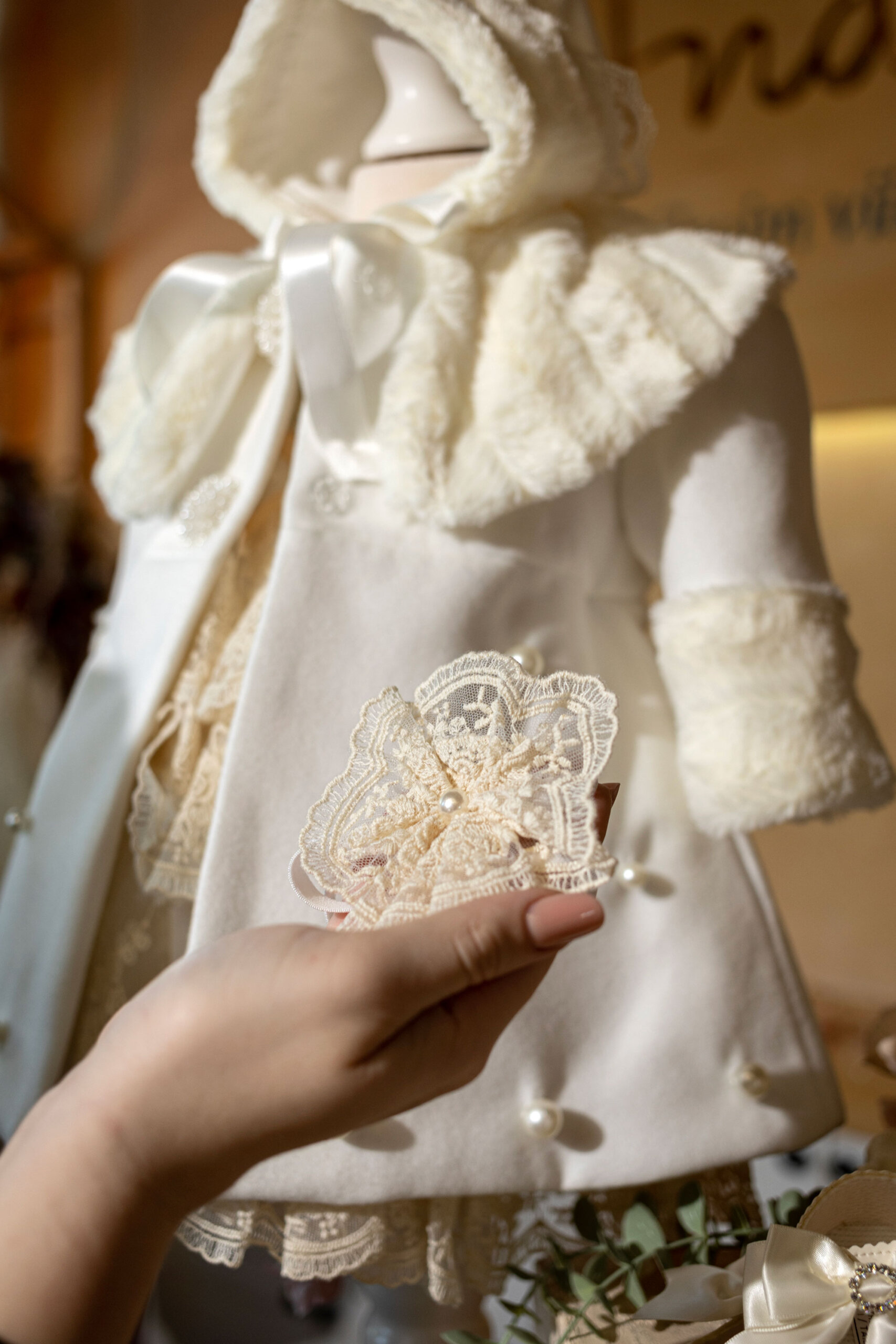 Set Palton Anne + Rochiță Claire ivoire