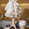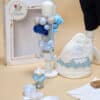🕯️ Lumânare de botez – Lumânare cu baloane din catifea în nuanțe delicate de crem, alb și auriu, accesorizată cu ursuleț de pluș