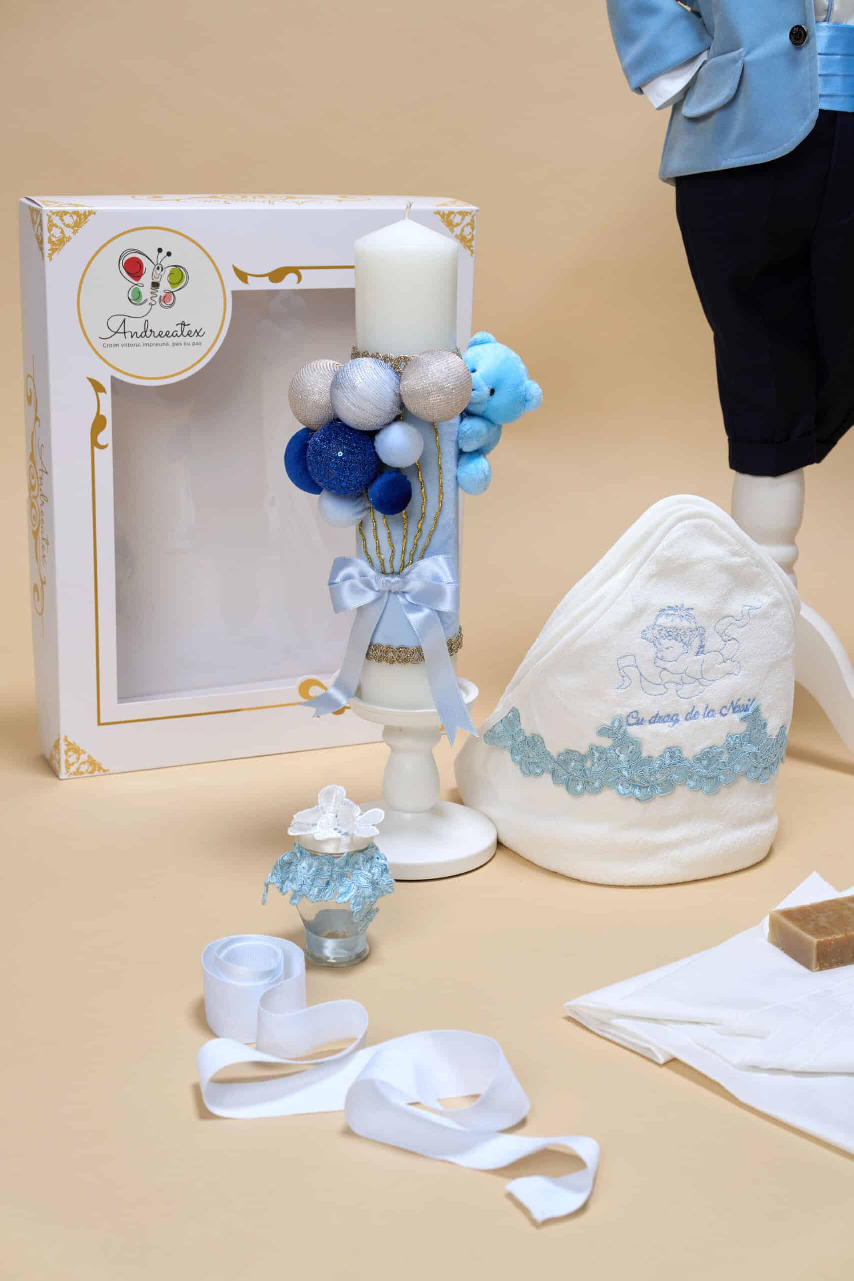 Transformă botezul într-o sărbătoare completă cu acest set de hăinuțe, trusou și lumânare, acum la preț redus!