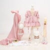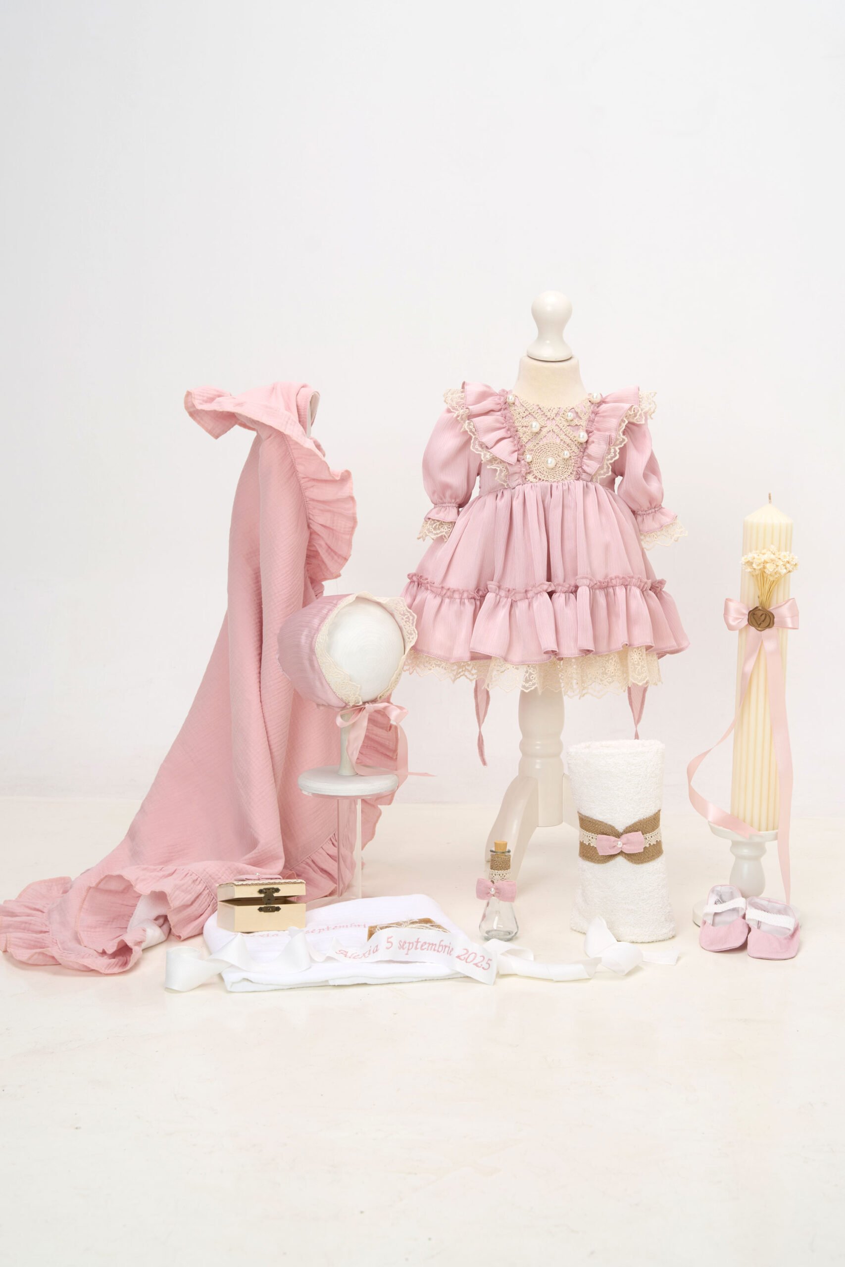 Set complet botez (trusou) – Claire – roz – mânecă 3/4