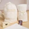 🕊️ Trusou de botez 9 piese – Tot ce ai nevoie într-un singur loc! Prosop cu capișon bebeluș, scutec bumbac cu capișon bebeluș, prosop preot, pânză de mir, fașă, săpun, sticluță mir decorată, cutiuță pentru prima șuviță și mini ramă “mărturie” – pentru poză bebeluș sau iconiță.
