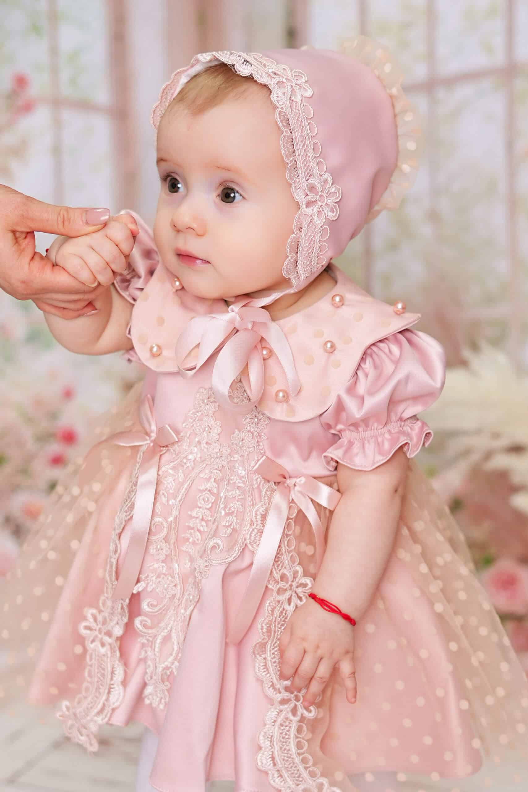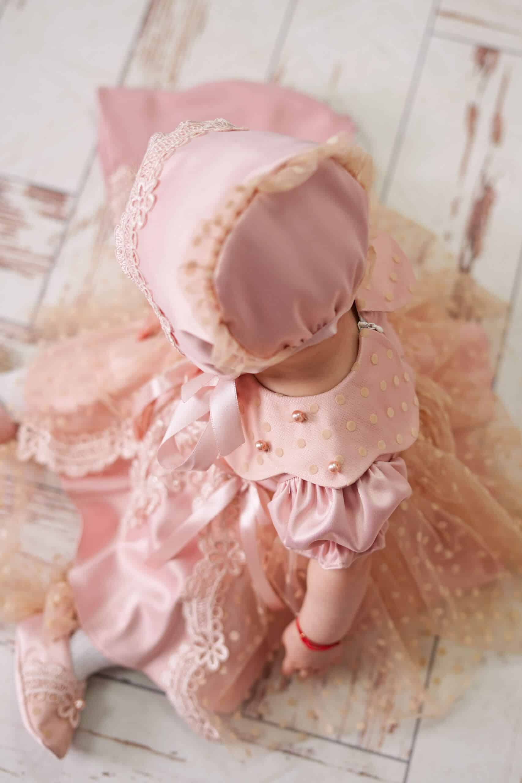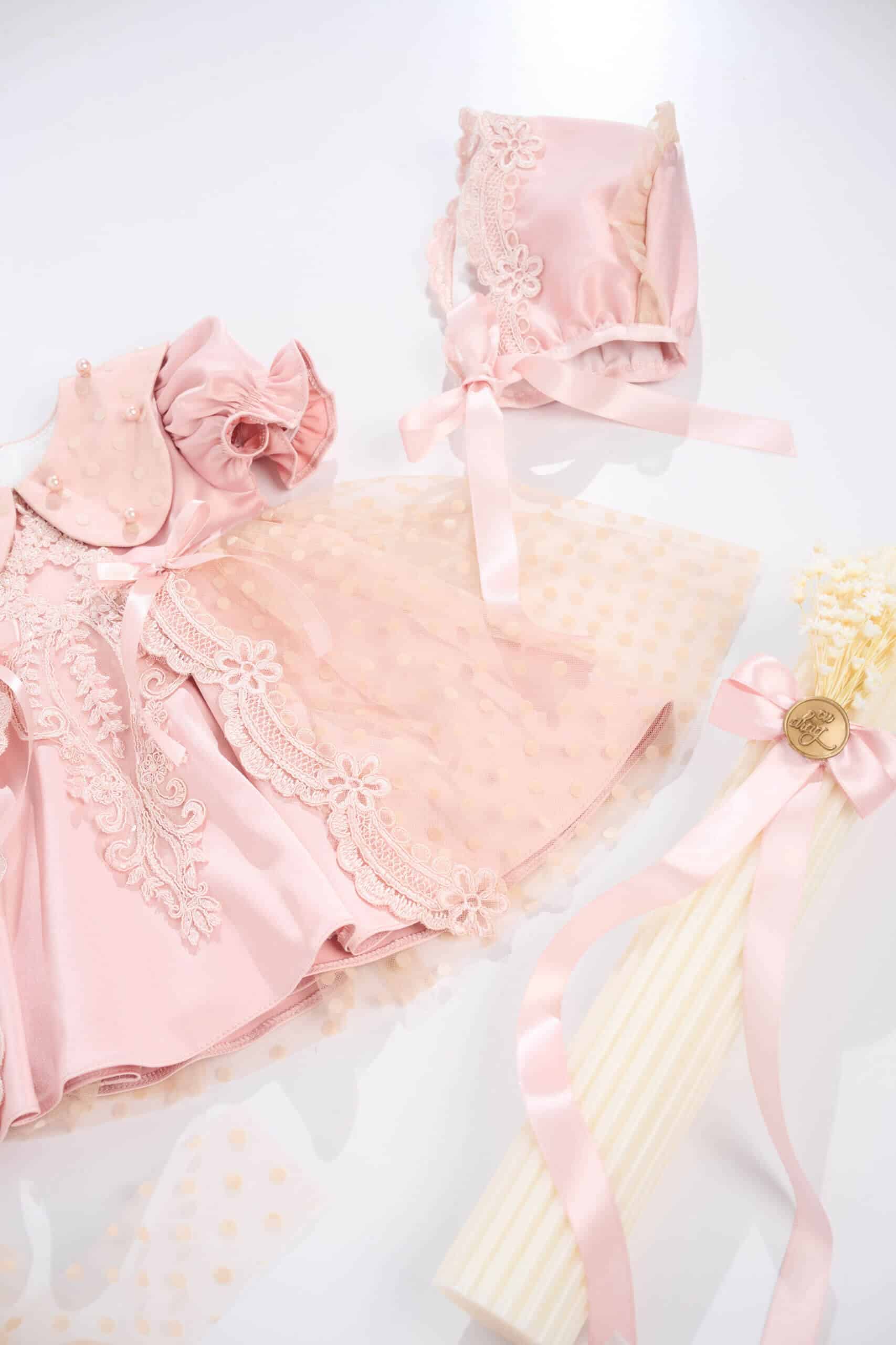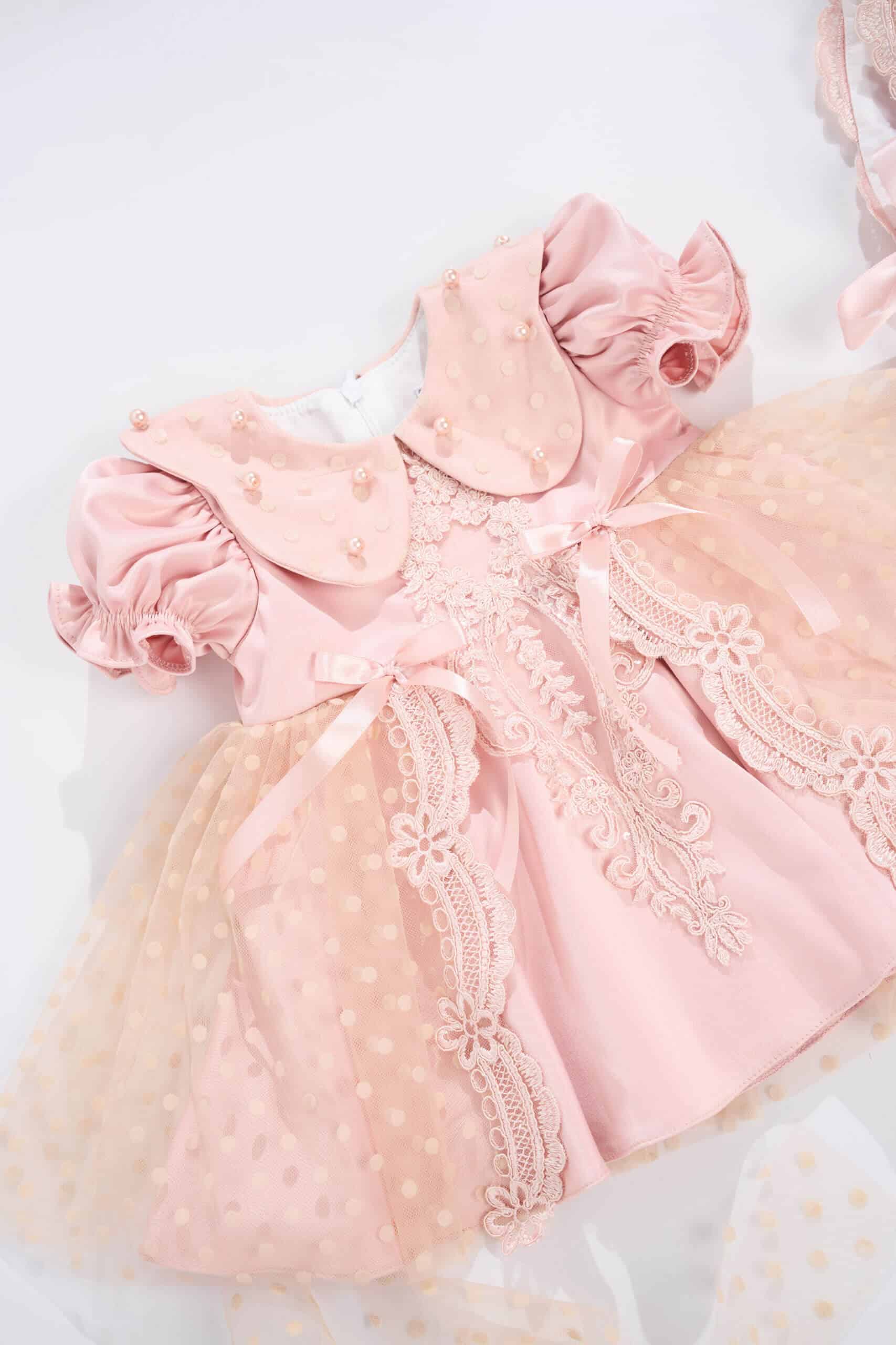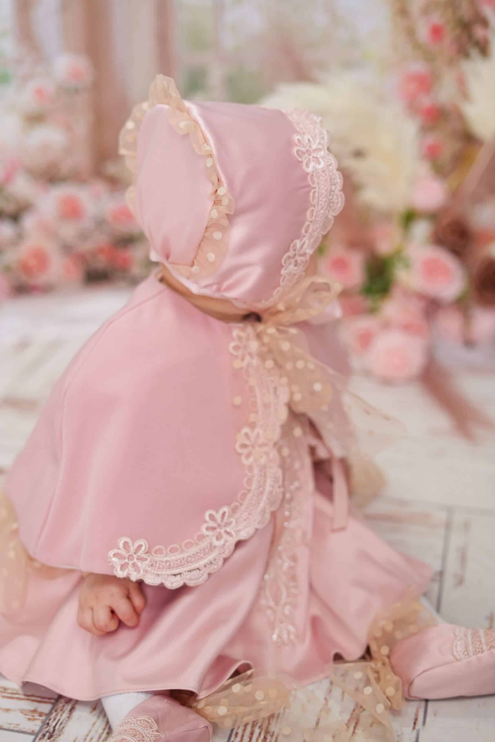 Set botez fetiță Audrey – Rochiță cu Capă – roz