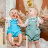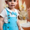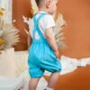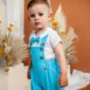 Salopetă din țesătură fină, vaporoasă cu elastic la tivul pantalonilor, cu bretele reglabile care se încrucișează la spate, reglabile cu nasturii din față.