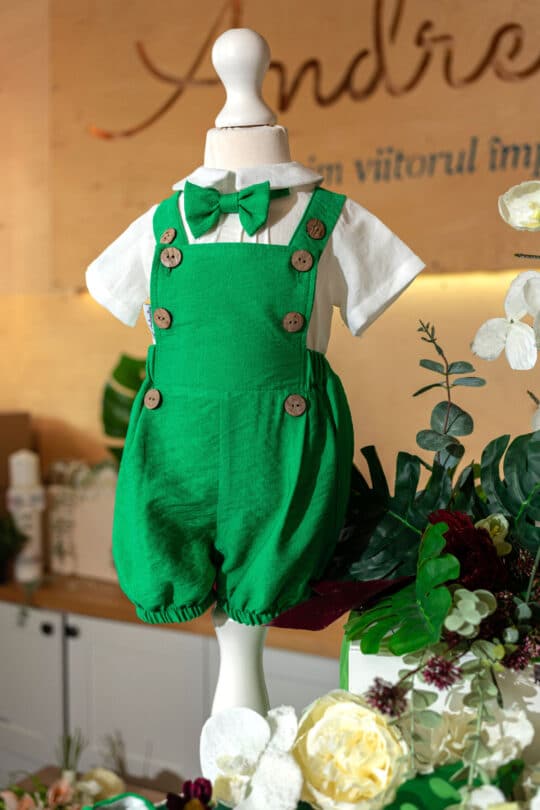 Costum botez cu sacou slim-fit din catifea – 5 piese