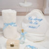 🕊️ Trusou de botez 7 piese – Tot ce ai nevoie într-un singur loc! Prosop cu capișon bebeluș, prosop preot, pânză de mir, fașă, săpun, sticluță mir decorată.
