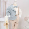 ✂︎ Costum botez băieți – Set elegant de botez, asortat cromatic, din bumbac, set compus din 5 piese
