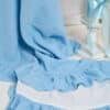 🕊️ Trusou de botez 7 piese –Setul conține pânza de mir cu capișon (125×75 cm), prosop decorat pentru preot (50×90 cm), pled din muselină cu interior tip prosop și capișon brodat (82×82 cm), săpun decorat, sticluță de mir asortată, fașă de 160 cm și cutiuță pentru prima șuviță.