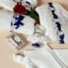 Fă primul său moment special și mai frumos cu Trusou Micul Prinț! Setul nostru de botez din 9 piese vine într-o tematică bleumarin cu detalii superbe din dantelă, toate din bumbac cusut manual.