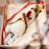 Setul nostru de botez este realizat manual cu dragoste și atenție la detalii, astfel încât micuțul tău să poată arăta cel mai bine în ziua lui specială.