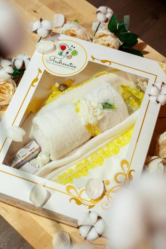 Evaluat la 5.00 din 5 pe baza a 5 evaluări de la clienți 5.00/55 recenzii pentru Trusou botez – galbenAdaugă o recenzie