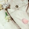 - Prosop cu capișon 82×82 cm – brodat cu îngeraș și “Cu drag, de la Nași!”