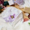 - Prosop cu capișon 82×82 cm – brodat cu îngeraș și “Cu drag, de la Nași!”