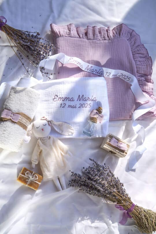Cu un design simplu și rafinat, realizat din mușelină și bumbac de calitate, acest trusou adaugă un strop de puritate și binecuvântare în ziua botezului, reflectând iubirea divină ce însoțește începuturile bebelușului în această lume.