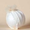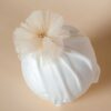 Turbănele din fond alb cu floare din multe straturi pufoase de tull cu perluțe accent în mijloc.