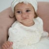 Turbănele din fond alb cu floare din multe straturi pufoase de tull cu perluțe accent în mijloc.