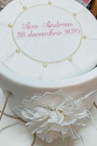 Prosop destinat ceremoniei de botez, folosit de preot în timpul slujbei. Se poate personaliza cu monogramă.