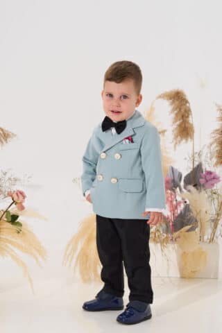 Costum botez băieți cu sacou, pantaloni și body, în verde sau mentă – 6piese