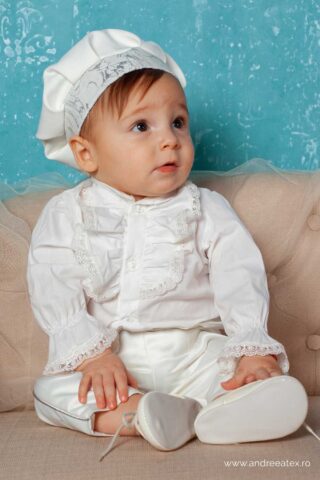 Costum botez cu sacou slim-fit din catifea – 5 piese