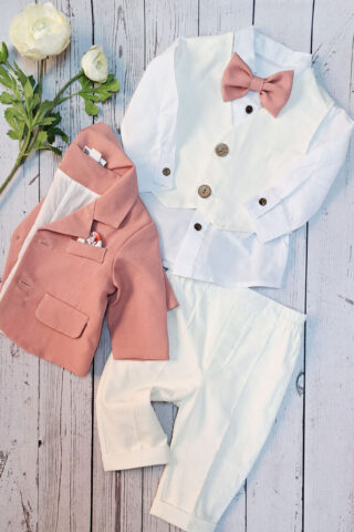 Costum botez cu sacou slim-fit și vestă – 5 piese