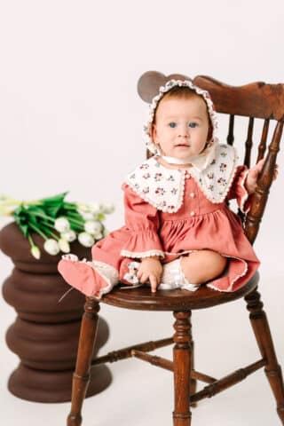 Rochiță Margueritte – roz-vintage (mânecă lungă)