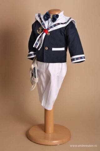 Costum de botez cu redingotă din catifea – 4 piese